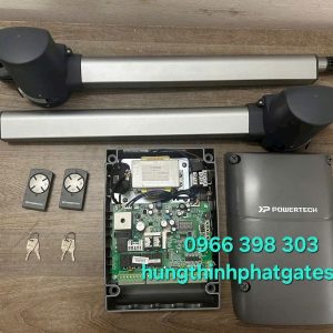 Motor cổng mở cánh tự động Powertech là cơ cấu cánh tay co duỗi để đóng/mở cổng bằng điều khiển remote từ xa
